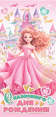 Открытка-конверт Сказочного Дня рождения! (ФС) 4-15-1562 детская, вертик.