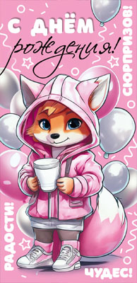 Открытка-конверт С Днем рождения! КДС1-15851 детский для девочки