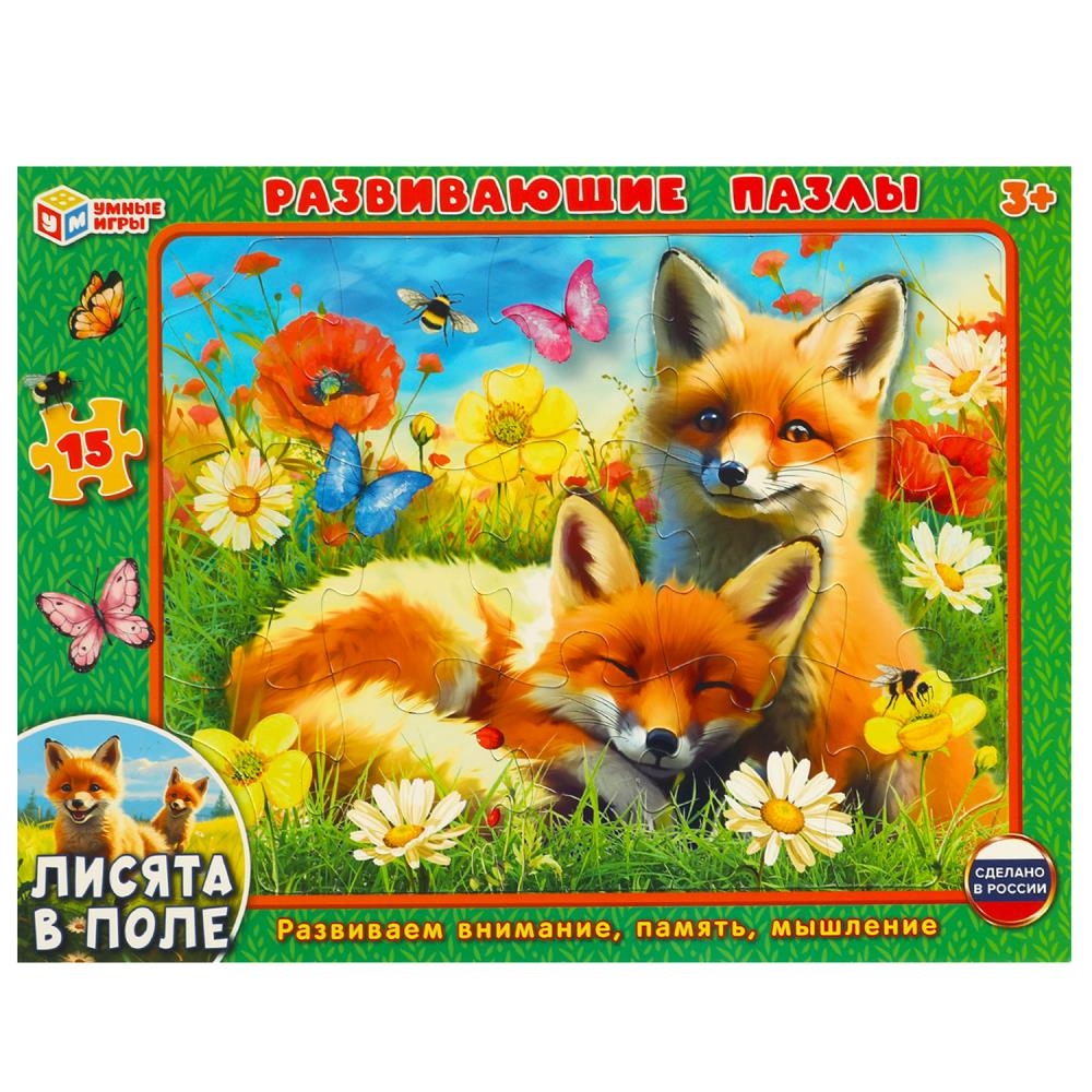 Пазлы картон 15элементов Лисята в поле 28,5*21,5см в рамке, фигурные Умные игры 428225