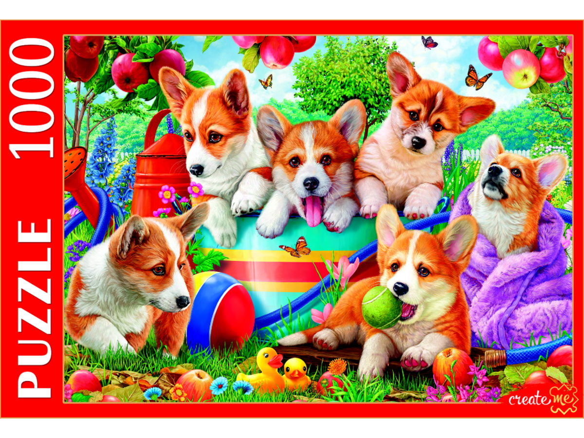Пазлы 1000эл РК Щенки Корги в саду Ф1000-0757