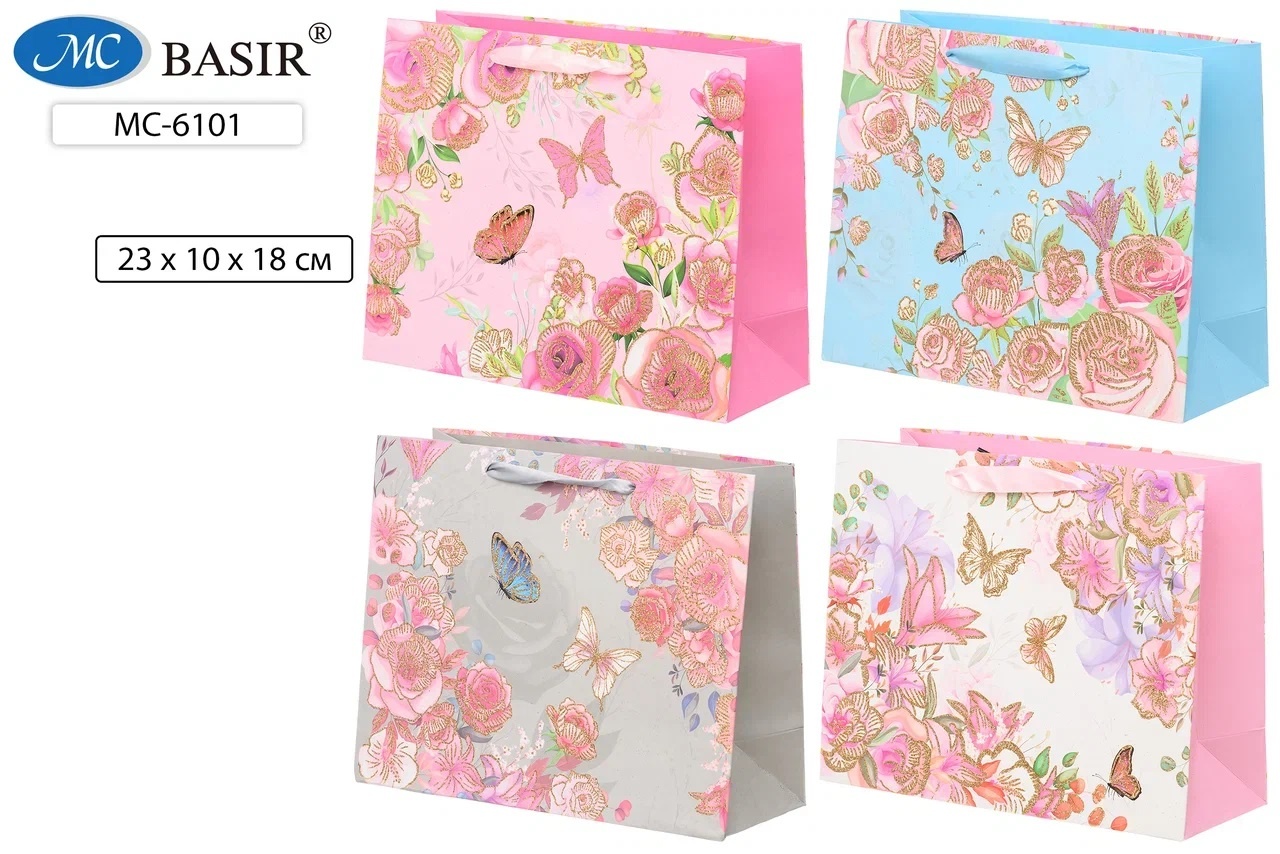 Пакет подарочный бумага 23*18см Цветы и бабочки Basir МС-6101 плотный, гориз. quantity