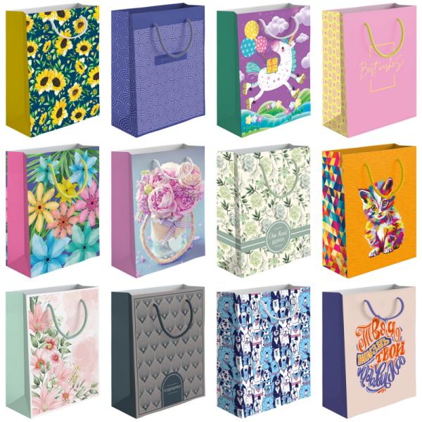 Пакет подарочный бумага 24*20см Ассорти 2024-GLOS_KD13 (2081-2092) ламинация
