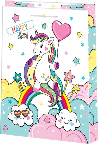 Пакет подарочный бумага 32,7*26см Единорог 10-41-176 ламинация, детский