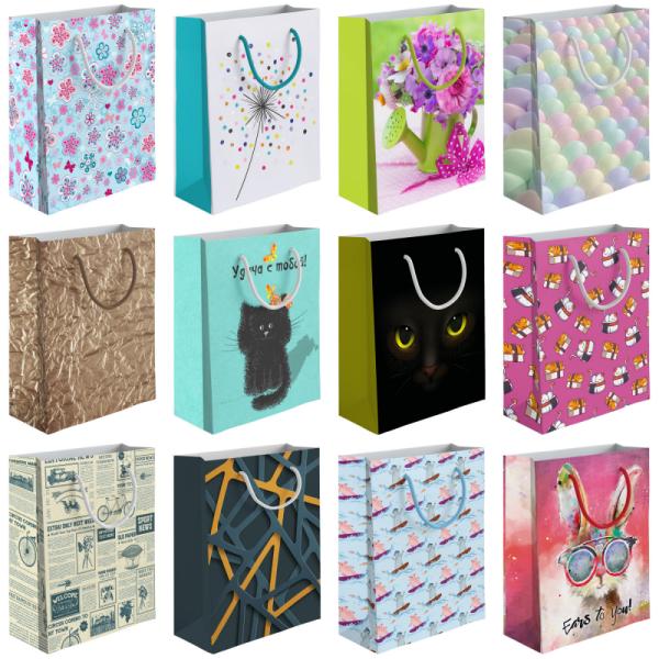 Пакет подарочный бумага 43*33см Ассорти 3343-GLOS_KD7(1492-1503) ламинация
