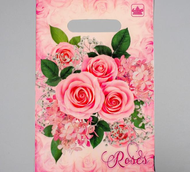 Пакет полиэтилен вырубная ручка 20*30см Воздушные розы 30мк quantity