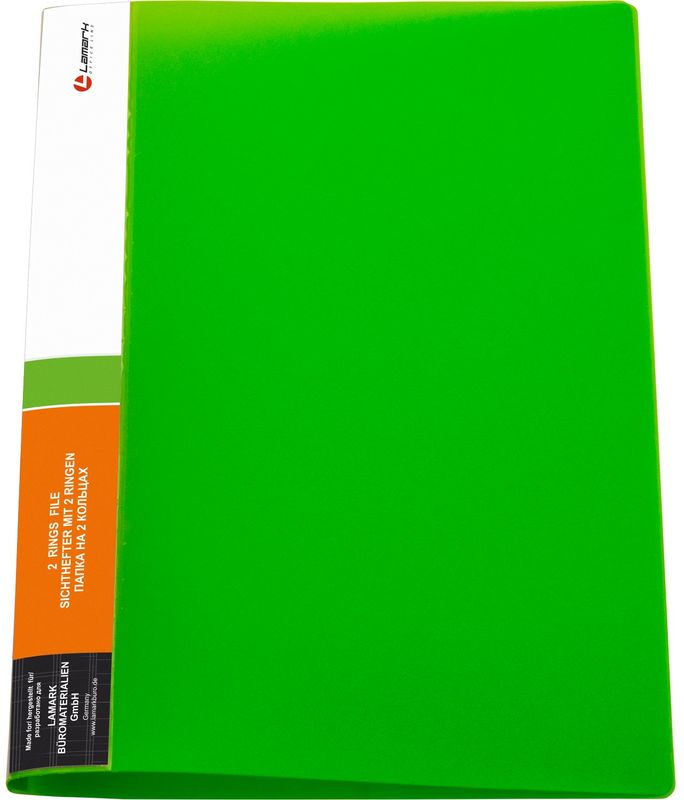 Папка А4 2кольца/25мм цвет неон зеленый 0,70мм Lamark RF0067-IMGN с торцевым вкладышем