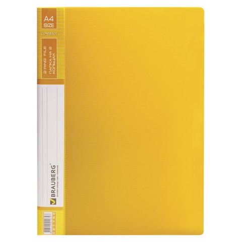 Папка А4 2кольца/35мм цвет желтый 0,90мм +карман Brauberg Contract 221795