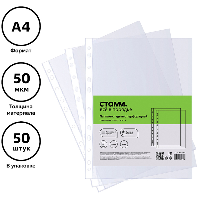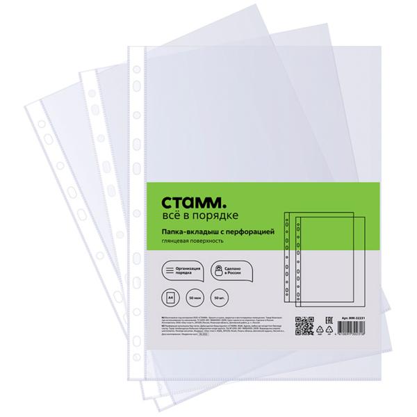 Папка-вкладыш А4 50мк с перфорацией гладкий Stamm ММ-32231 (1/50шт)