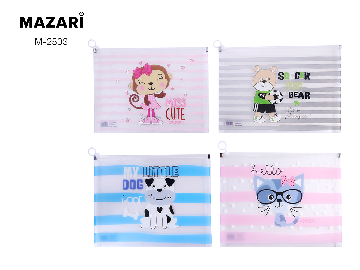 Папка-конверт на молнии А4+ 0,17мм с рисунком Cute Mazari M-2503 (330*245мм)