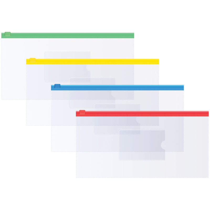 Папка-конверт на молнии А6+ 0,12мм прозрачная ассорти с карманом 25,5*13см Офис-спейс ZB6_19611