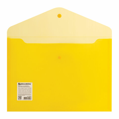 Папка-конверт с кнопкой А4 0,18мм желтая прозрачная плотная Brauberg 270472