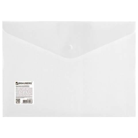 Папка-конверт с кнопкой А4 0,18мм прозрачная матовая сверхпрочная Brauberg 270471