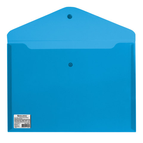 Папка-конверт с кнопкой А4 0,18мм синяя прозрачная плотная Brauberg 224813