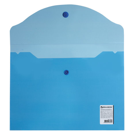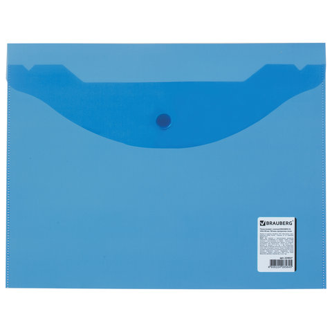 Папка-конверт с кнопкой А5 0,18мм прозрачная синяя Brauberg 224027