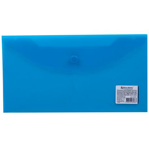 Папка-конверт с кнопкой С5 0,15мм синяя прозрачная Brauberg (д/билетов и док-ов) (250*135мм) 224031