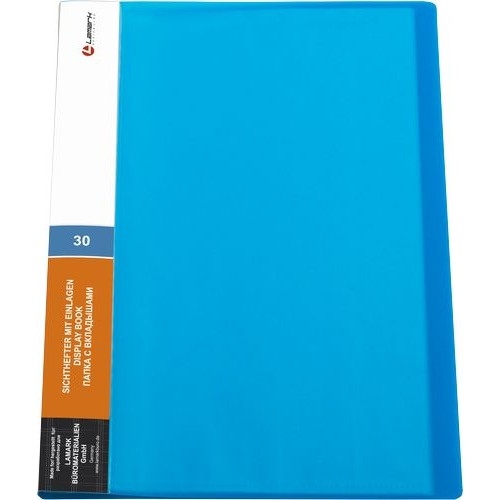 Папка 30 файлов синяя 0,60мм жесткая Lamark DB0134-BL с торцевым вкладышем, корешок 20 мм