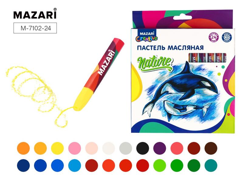 Пастель масляная 24цв. Mazari Дельфин M-7102-24 шестигранная 10 мм, длина 73 мм