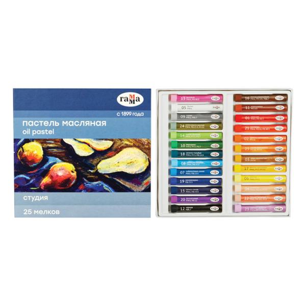 Пастель масляная 25цв. художественная Гамма Студия 290920201 круглая, длина 57 мм