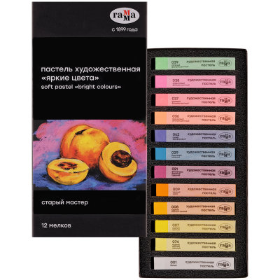 Пастель сухая 12цв. художественная Гамма Старый мастер 2309195 Яркие цвета, круглая 8,8*64 мм