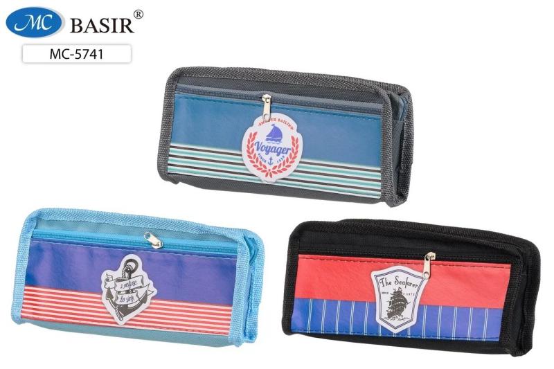 Пенал-косметичка корпусный Морская тема, ткань + карман на молнии 20,5*9*4см МС-5741 ассорти