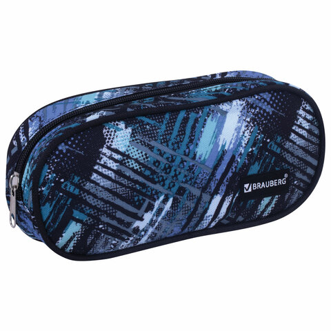 Пенал-косметичка корпусный Lines (синие штрихи) полиэстер 22*9*5см Brauberg 229273