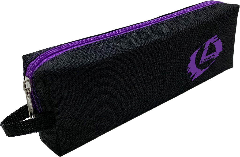 Пенал-косметичка объемная с ручкой, цвет черный, фиолетовый логотип и молния, 21*7*3,5 см PB0028-VL