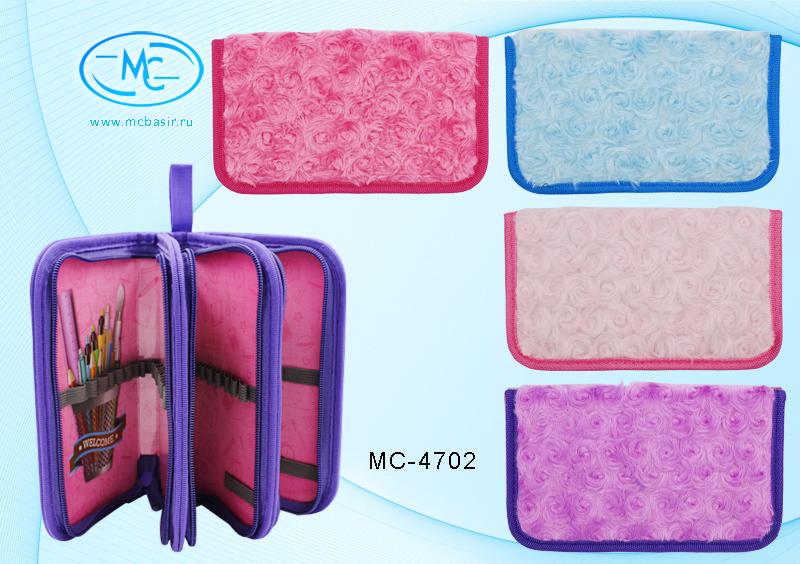 Пенал на 3 молнии 19*13 см Розы, меховой, ассорти Basir 4702