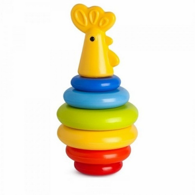 Пирамидка детская пластик 18см 6 колец Петушок, в сетке Росигрушка 9243