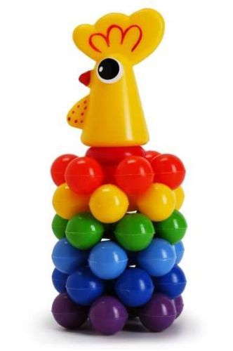 Пирамидка детская пластик 20см 6 колец с шариками Петушок, в сетке Росигрушка 9248