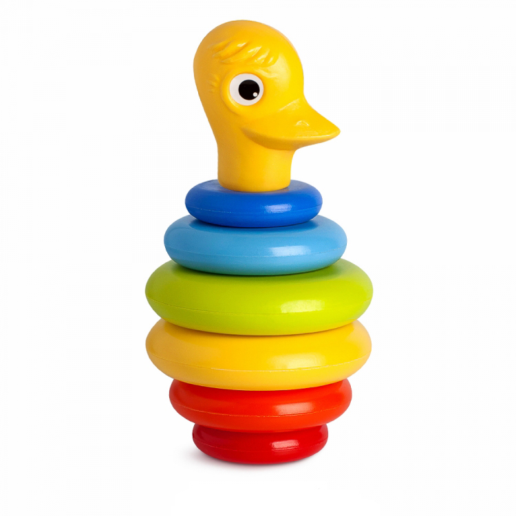 Пирамидка детская пластик 20см 6 колец Утенок, в сетке Росигрушка 9244