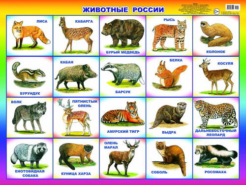 Плакат обучающий А2 Животные России Алфея 200045 (40)