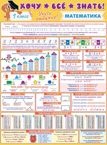 Плакат обучающий А2 Хочу все знать. Математика 1 класс 0-30-012(96) quantity