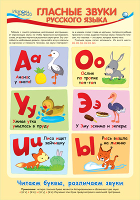 Плакат обучающий А3 Гласные звуки русского языка ПЛ-11459
