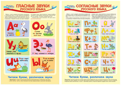 Плакат обучающий А3 Гласные и согласные звуки русского языка (2 плаката) в пакете КПЛ-12001