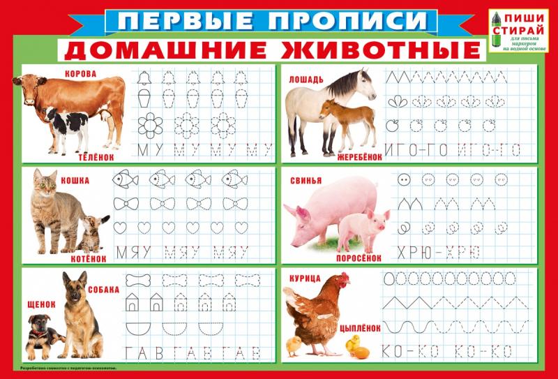 Плакат обучающий А3 Первые прописи. Домашние животные 070.044