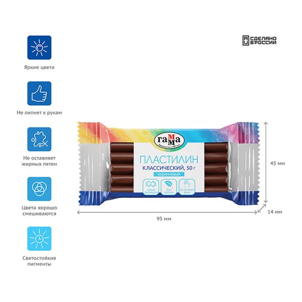 Пластилин цветной детский 50гр коричневый Классический Гамма 270818_16