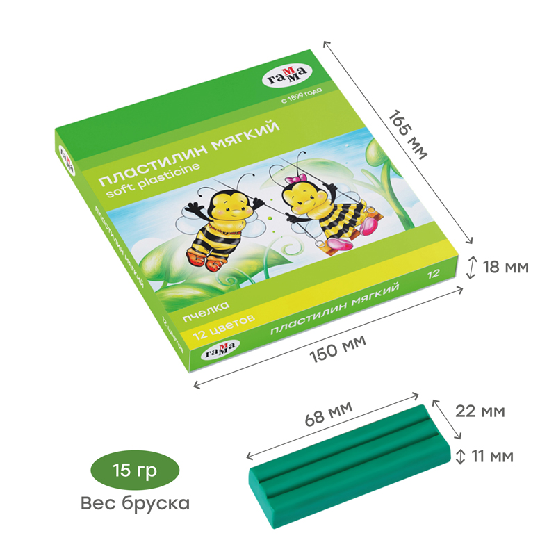 Пластилин 12цв. восковой Гамма Пчелка 180г 280032H стек карт/коробка