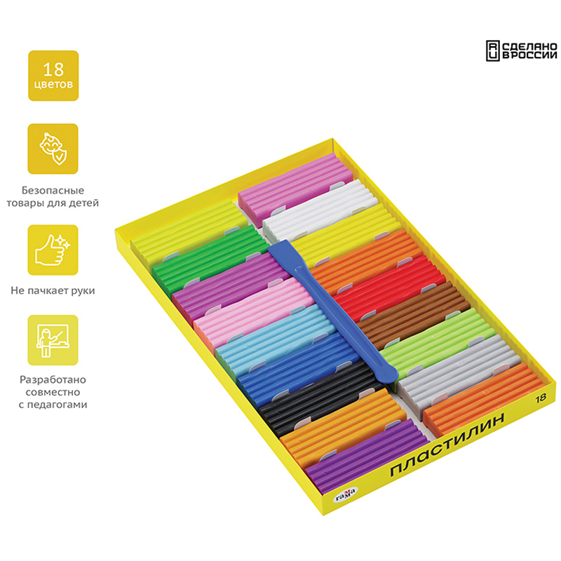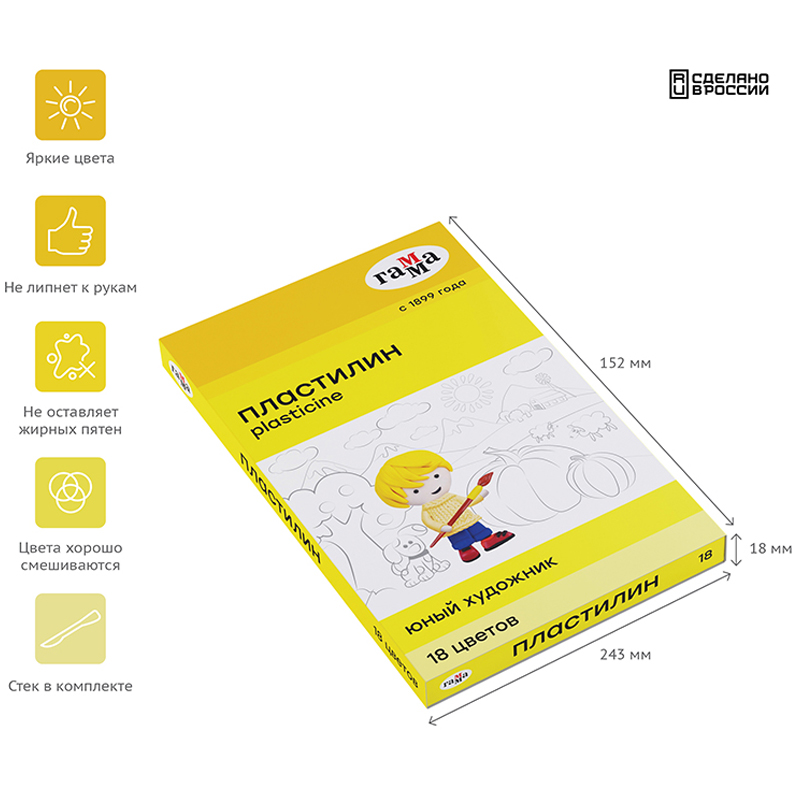 Пластилин 18цв. Гамма Юный художник 252г стек карт/коробка 280047