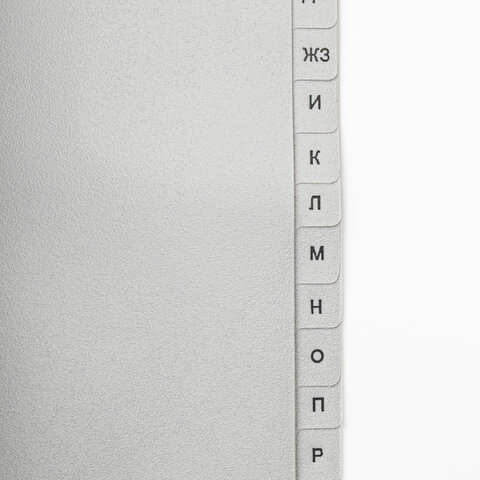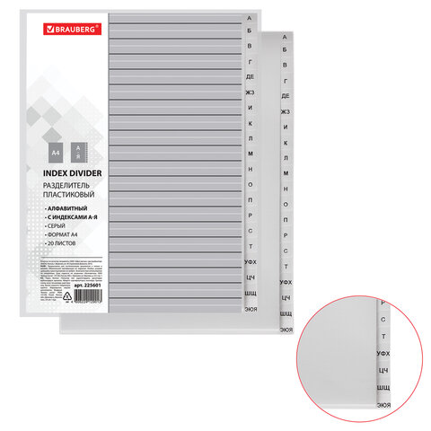 Разделитель для папок А4 пластик буквенный (А-Я) серый Brauberg 20л Россия 225601
