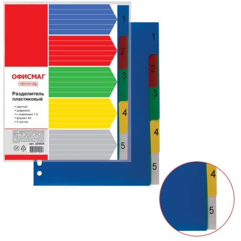 Разделитель для папок А5 пластик цифровой (1-5) Офисмаг 225629 quantity