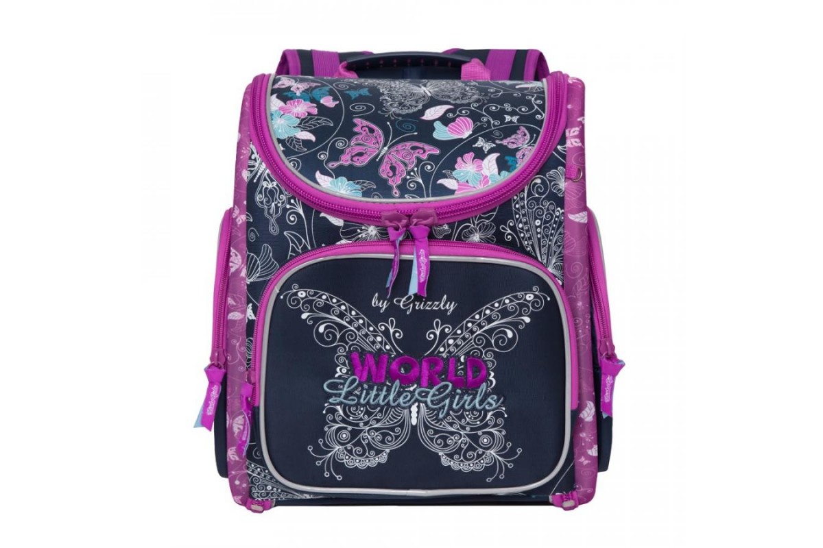 Ранец анатомическая спинка 22л Grizzly женский Бабочка темно-синий 34*37*18см RA-971-9