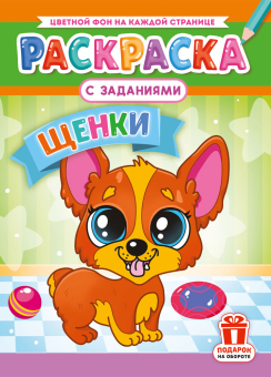 Раскраска А4 БВ с заданиями Щенки РКСБ-771-772.771.772 16стр.