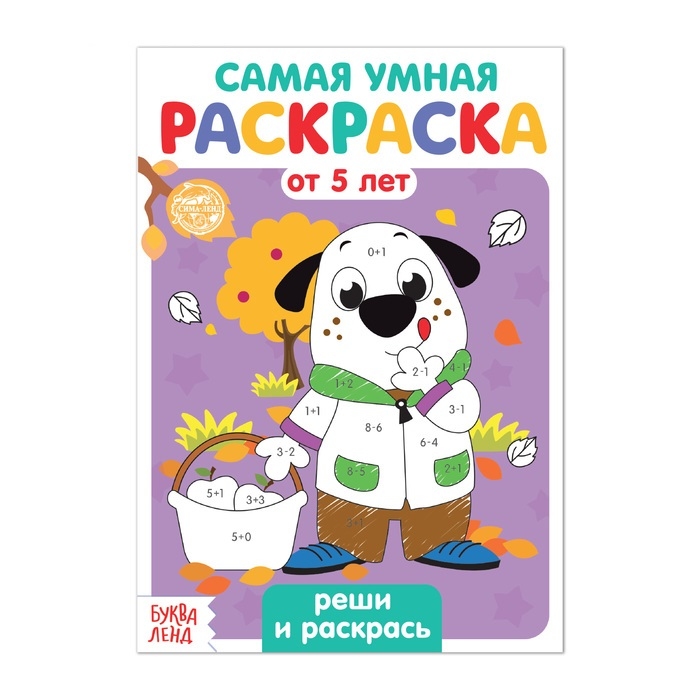 Раскраска А5 БукваЛенд Самая умная. Реши и раскрась. Собачка 5+ 4834964 12стр.