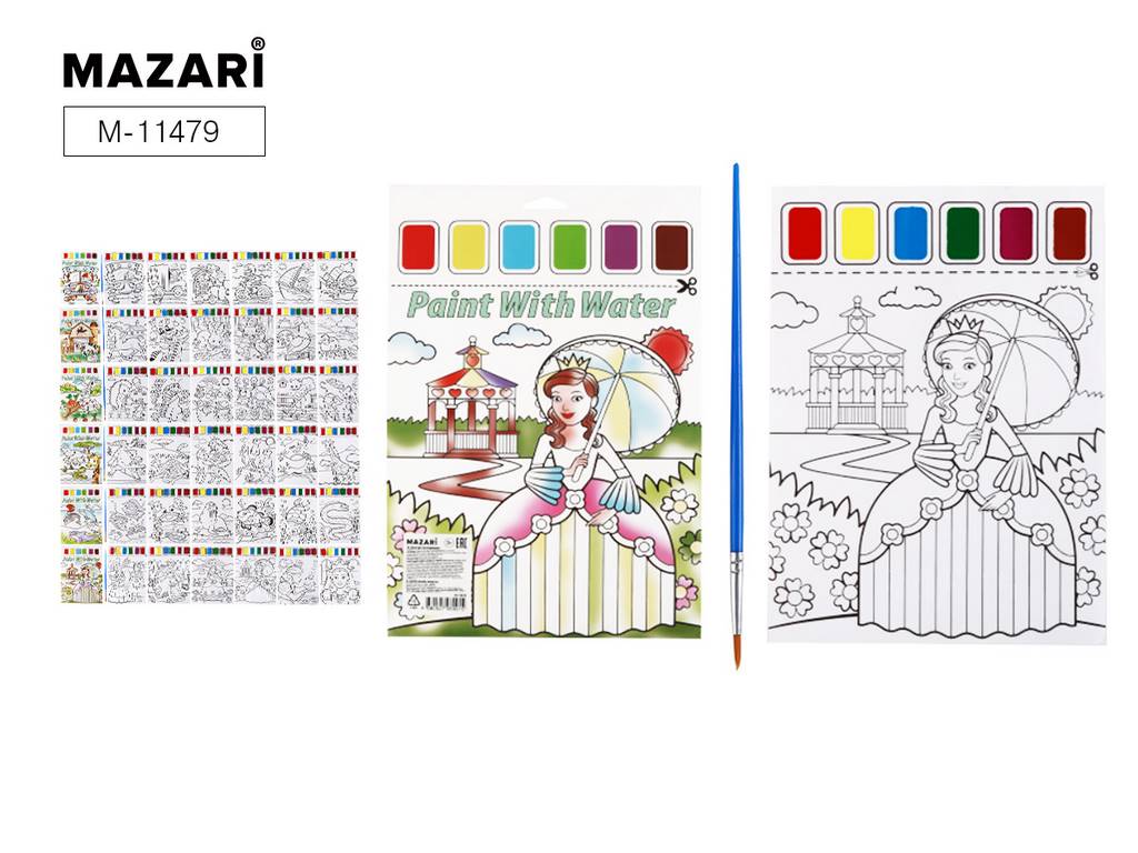 Раскраска с красками А4 Принцесса (6 картинок, краски 06цв., кисточка) Mazari M-11479*