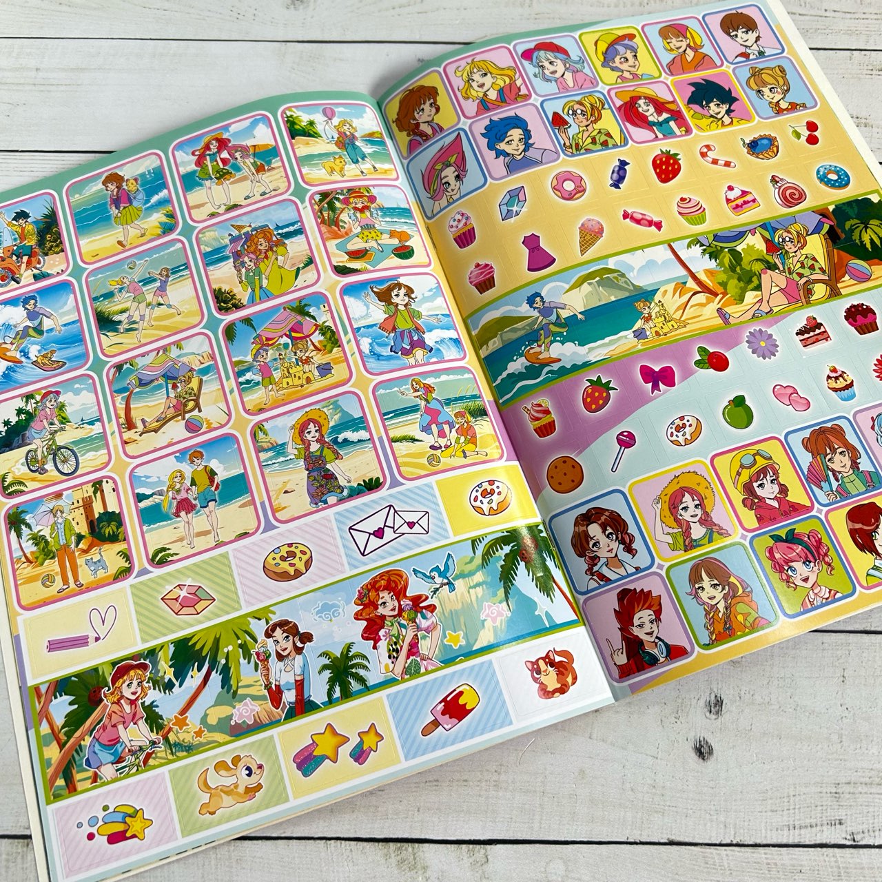 Раскраска с наклейками А4 Аниме. Каникулы на море (122 наклейки) РН-12311 16стр.