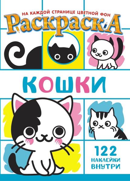Раскраска с наклейками А4 Кошки (122 наклейки) РН-426,425 БРН-008,959,1045,1044.1280 16стр.