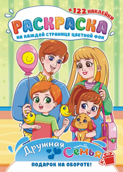 Раскраска с наклейками А4 Моя дружная семья (122 наклейки) РН-1201,1200 16стр.