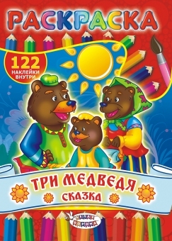 Раскраска с наклейками А4 Сказки Три медведя (122 наклейки) РН-374 16стр.