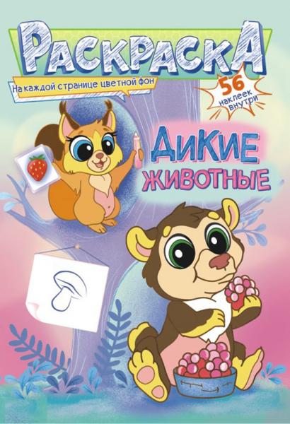 Раскраска с наклейками А5 Дикие животные (56 наклеек) РНМ-012/154,548 16стр.