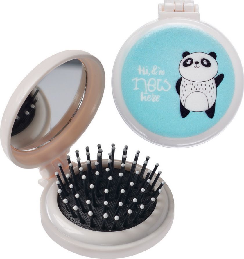 Расческа складная массажная детская 6,5*13,5см круглая с зеркалом Панда AS 1603 quantity
